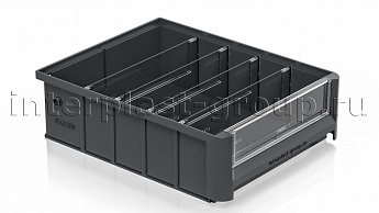 Евроконтейнер открытые ручки/сплошное дно (серый), 400x300x220 мм