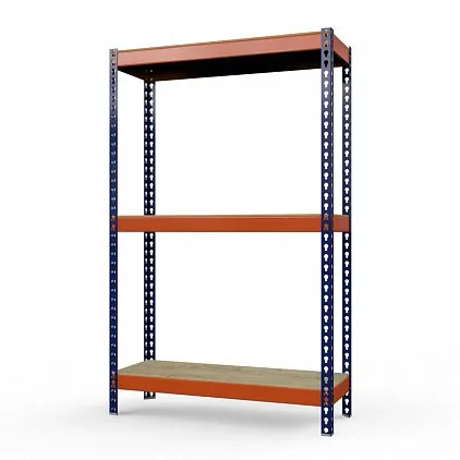 Стеллажи Профи-Т окрашиваются порошково-полимерной краской (стойки - синего цвета, стяжки - оранжевого).