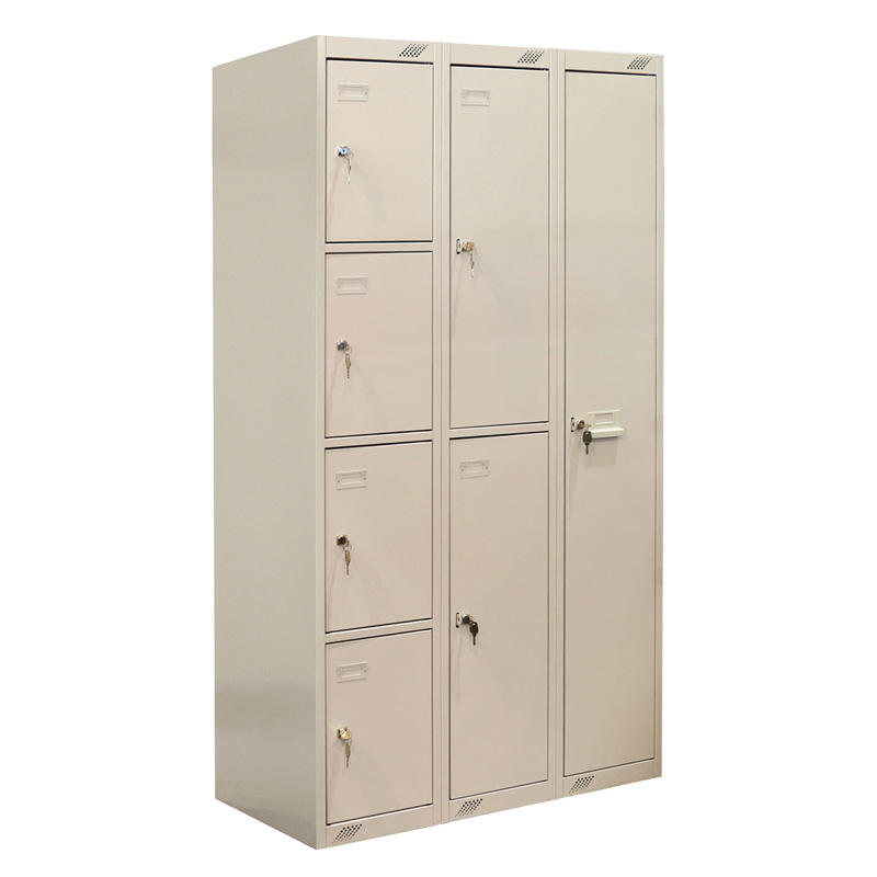 Особенность этой модели, в том что она поделена на отделения разного размера, которые запираются на собственный замок. Это позволяет, использовать данный шкаф для раздевания нескольких человек человек одновременно, в зависимости от необходимого человеку места.