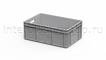Евроконтейнер открытые ручки/сплошное дно (серый), 600x400x220 мм в Чебоксарах