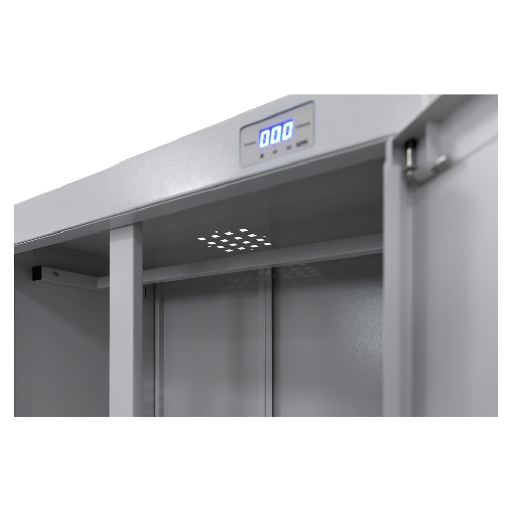 Конструктивно шкаф состоит из двух базовых элементов: верхней части корпуса шкафа и нижней подставки с встроенным блоком нагрева. Верхняя часть корпуса соединяется с подставкой с помощью стандартных метизов.