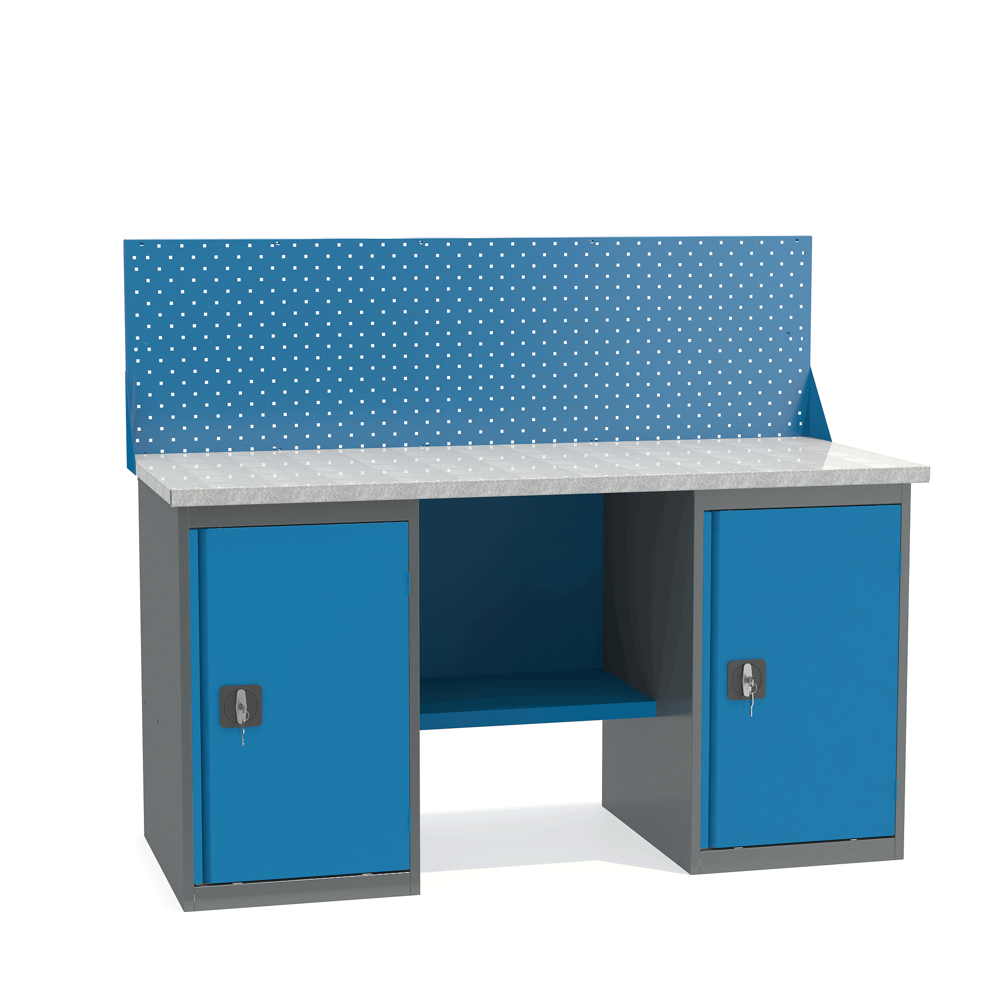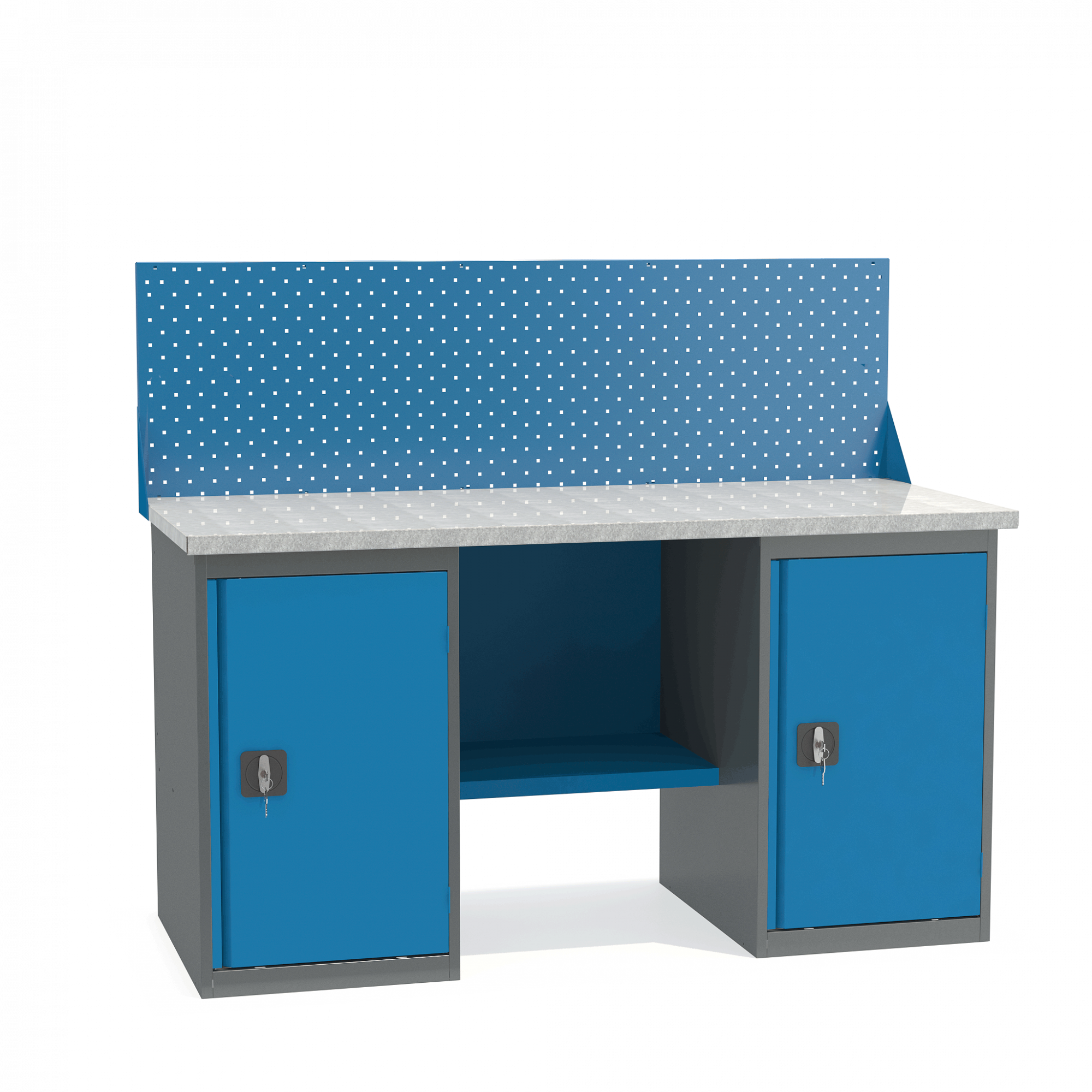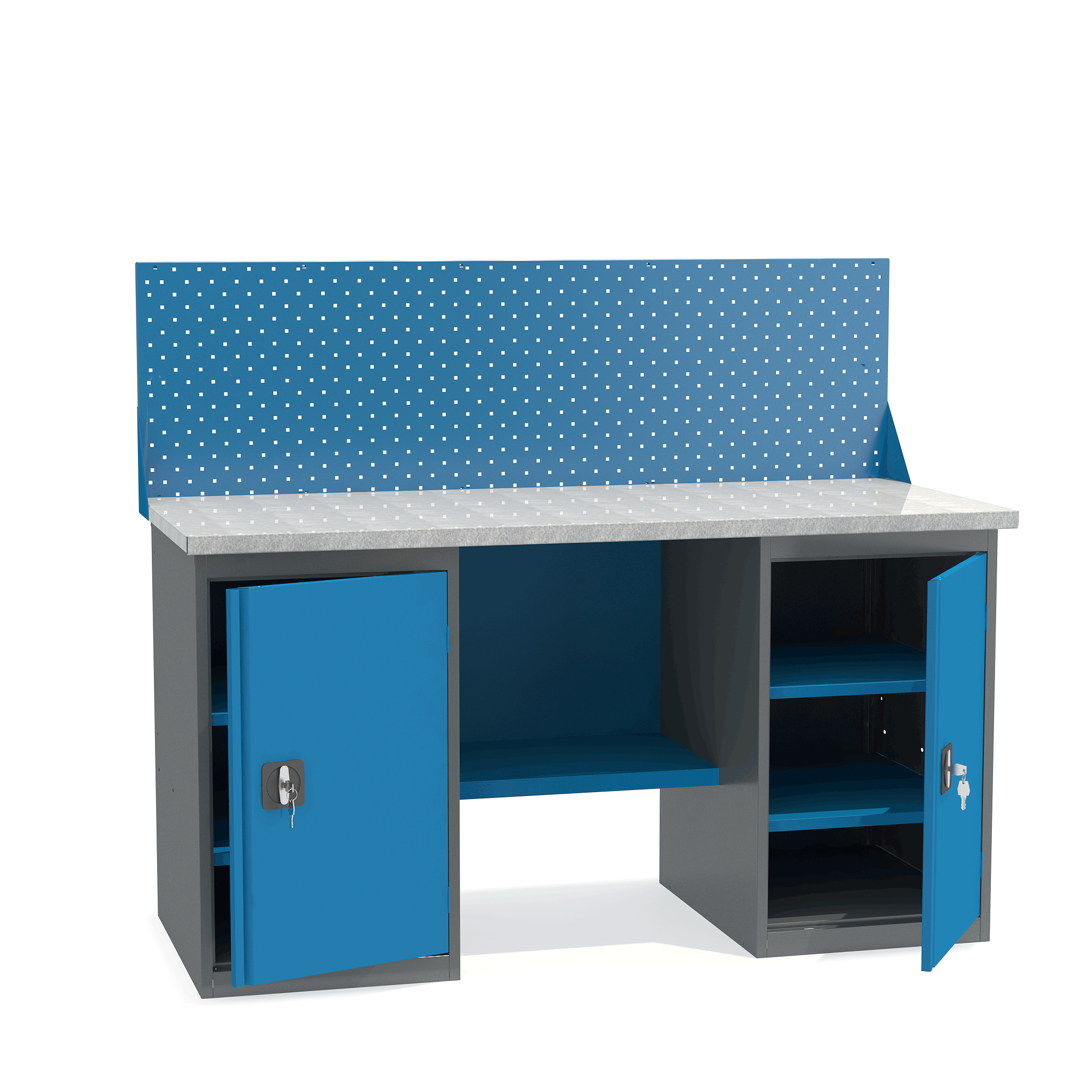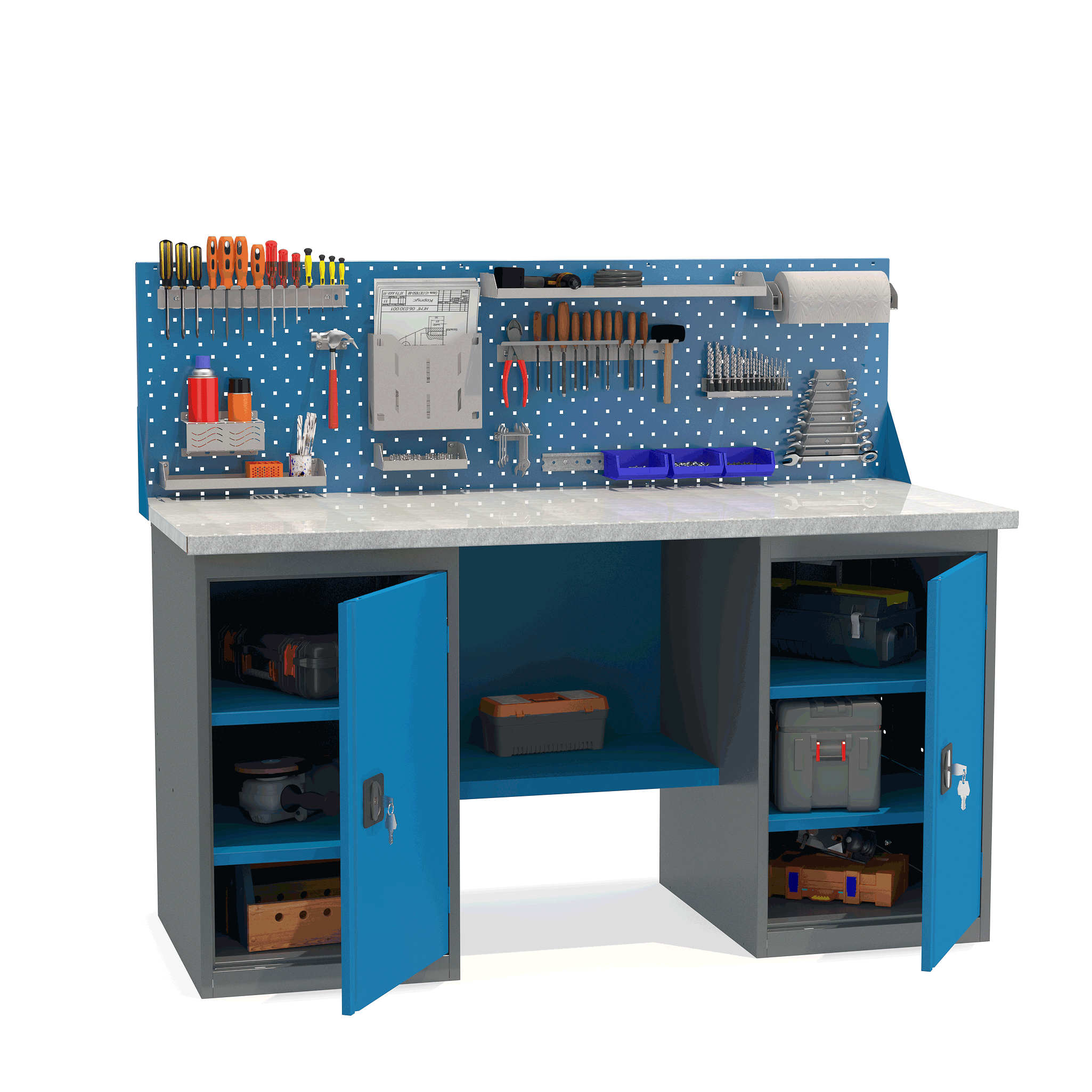 - Верстак имеет надежную модульную конструкцию с усиленной столешницей (плита МДФ 25мм, покрытая листом оцинкованного металла).