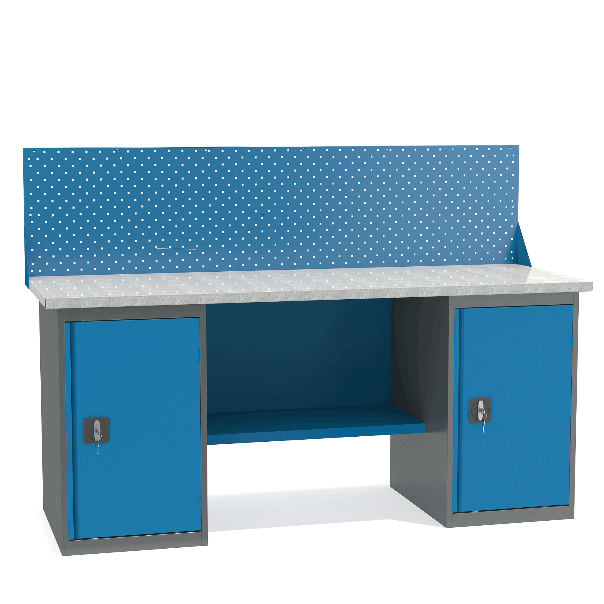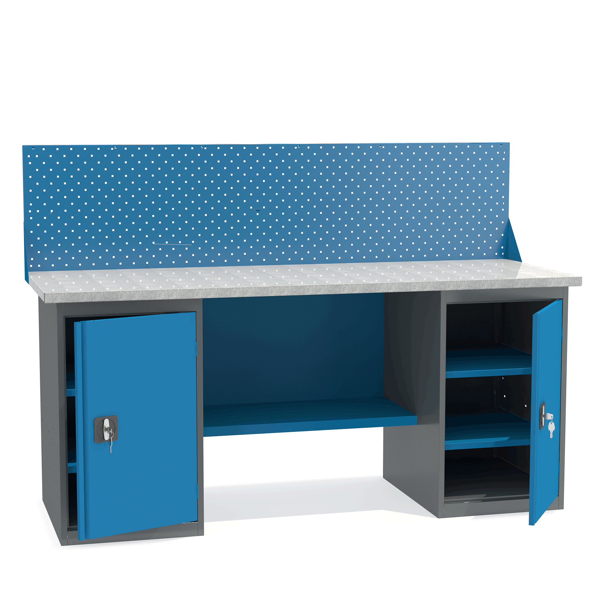 - Верстак укомплектован двумя тумбами с полками.