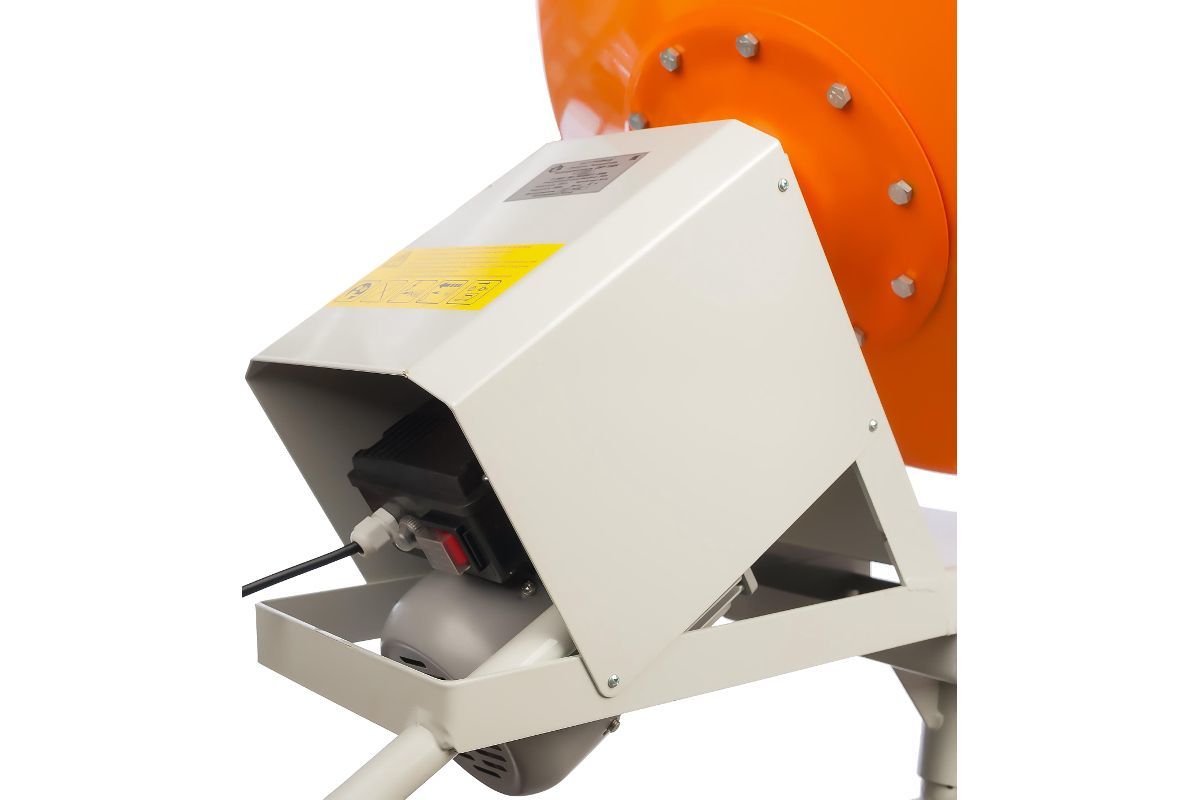 Конструкция предусматривает мощный цилиндрический редуктор и ручной привод опрокидывания. Для удобства применения он выполнен в форме рычага. Долговечный и надежный венец мешалки российский изготовитель сделал из сплава чугуна.