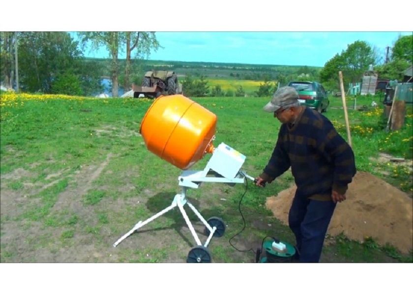Объем емкости – 132 л, однако в бетономешалке может находиться не больше 65 л раствора. Весит оборудование 47 кг, его мощность составляет 0,55 кВт. Это отличное решение для строительных и ремонтных бригад, поскольку бетономешалка без труда проходит в двери жилых помещений. У нее относительно небольшие габариты. В то же время оборудование можно использовать при закладке фундамента, ремонте дач, коттеджей, домов.