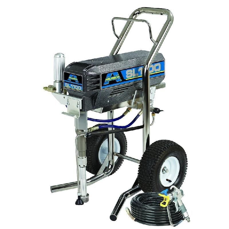 Электрический распылитель SL1100 является выбором крупносерийного подрядчика, который хочет усиленную установку, чтобы поддерживать несколько постов или возможность распылять тяжелые покрытия как эпоксиды и эластомеры.