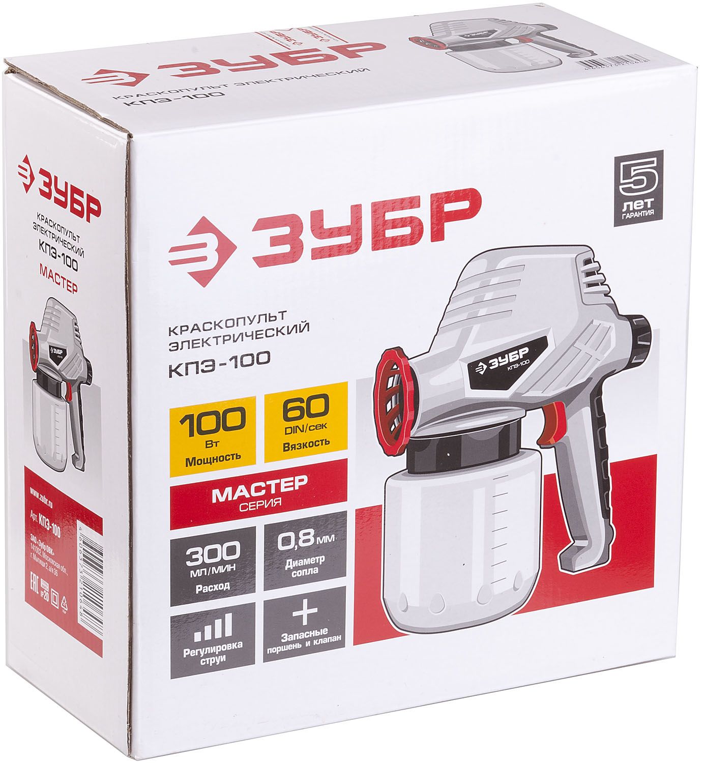 Краскопульт (краскораспылитель) электрический, ЗУБР КПЭ-100, 0.8 л, краскоперенос 0-300мл/мин, вязкость краски 60 DIN/сек, сопло 0.8мм, 100Вт в Чебоксарах