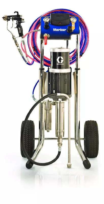 Установки Graco Merkur поставляются полностью укомплектованными для нанесения материалов методом безвоздушного, комбинированного распыления или для нанесения ЛКМ в электростатическом поле.