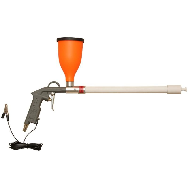 Трибостатический пистолет "Старт-50-трибо" с воронкой предназначен для мелкосерийного производства с частой сменой цветов краски, отработки технологических процессов, перекрашивания, окрашивания труднодоступных поверхностей и острых углов, нанесения толстых слоев краски.