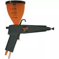 Электростатический распылитель "Старт-50" с воронкой предназначен для мелко и среднесерийного производства, производства с частой сменой цветов краски, отработки технологических процессов. Может использоваться на производствах с автоматическими линиями для подкрашивания изделий. Воронка изготовлена из нового полупрозрачного материала, для удобства операторов порошковой окраски на поверхность нанесена риска с отметками от 100 до 350 мл.