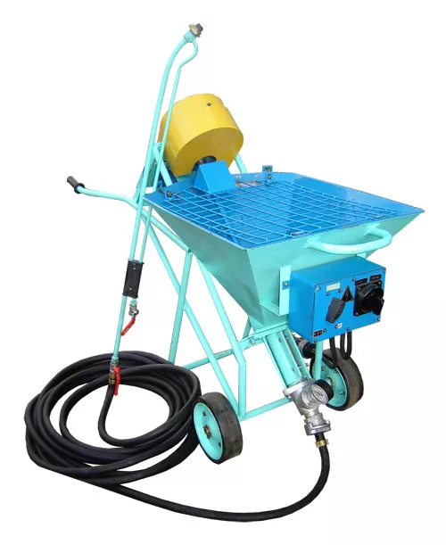 Установка малярная СО-244. Предназначена для подачи по рукавам и нанесения на обрабатываемую поверхность водных малярных составов. Установка может использоваться для подачи и нанесения водных огнезащитных составов и тонких штукатурок. Питание установки осуществляется от трехфазной сети переменного тока частотой 50 Гц, напряжением 380 В. Для нанесения шпатлевок, огнезащитных составов и тонких штукатурок к распылителю установки подается сжатый воздух давлением 0,6 МПа и расходом не менее 0,5 м3/мин.