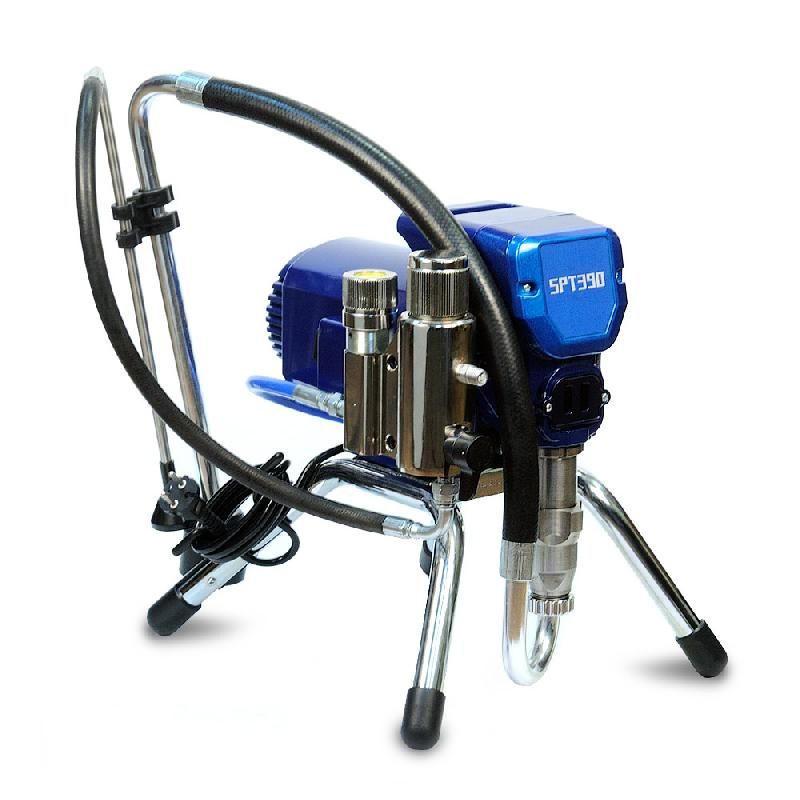 HYVST SPT 390 – оборудование для проведения покрасочных работ безвоздушным способом. Окрасочный аппарат собран по образу и дизайну американского окрасочного агрегата Graco 390 KA. Весь принцип работы данного аппарата и все особенности распыления краски с помощью него полностью аналогичны аппарату фирмы Грако. Окрасочный аппарат применяют для небольших объемов покрасочных работ на строительных площадках, при покраске стен,потолков, фасадов, грунтования и покраска металла. Окраска от окрасочного агрегата ведется через специальный краскопульт для безвоздушного распыления краски под высоким давлением.