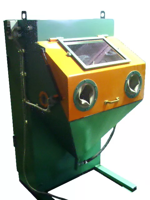 Камеры струйной очистки типа КСО. Абразивоструйные камеры бывают инжекторного и напорного типа. В камерах инжекторного типа КСО - воздух и абразив подаются по двум разным рукавам. Воздух по рукаву подается непосредственно в соплодержатель, в котором установлены два сопла: абразивоструйное и воздушное. Между соплами создается разряжение, за счет которого происходит подсос абразива. Скорость и энергия воздушно-абразивной струи при инжекторном типе значительно ниже, чем в напорном, что удовлетворяет при небольших объемах работ.