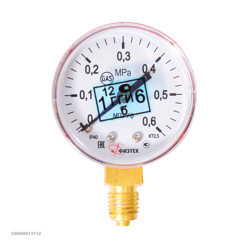 Манометр на редуктор пропановый, метановый с поверкой 0,6 МПа (6 кгс/см кв, кл. т. 2,5)