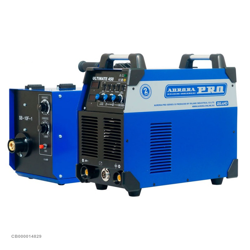 AuroraPRO ULTIMATE 450 – мощный и производительный инверторный полуавтомат трёхфазного типа, выполненный в варианте «декомпакт». В конструкцию промышленного полуавтомата входит четырёхроликовый подающий механизм выносного типа, который соединяется с источником при помощи набора 5-метровых кабелей (имеются в стандартной поставке). Это позволяет создать максимально расширенную и безопасную зону работы для сварщика, независимо от условий.