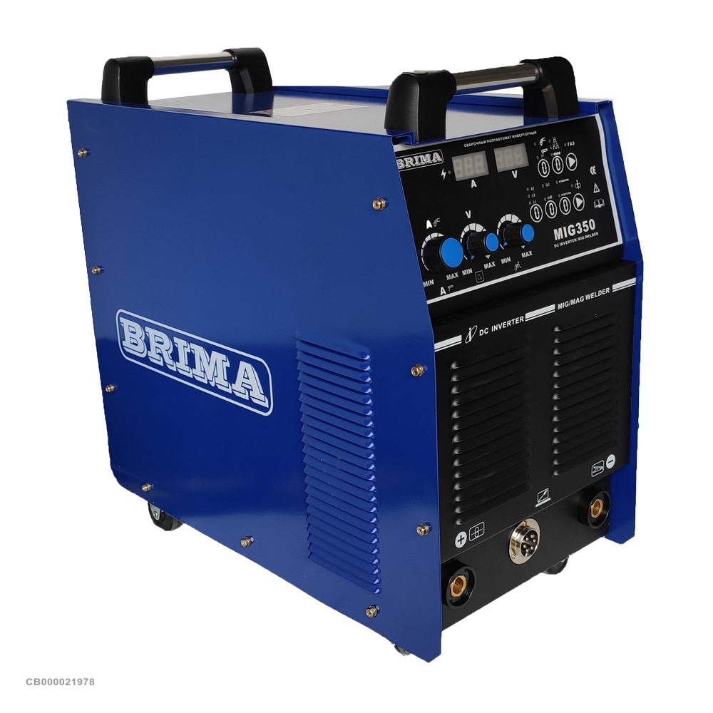 BRIMA MIG-350 DIGITAL – профессиональный сварочный полуавтомат, предназначенный для сварки изделий из углеродистых и легированных марок стали сплошной проволокой в среде защитных газов.