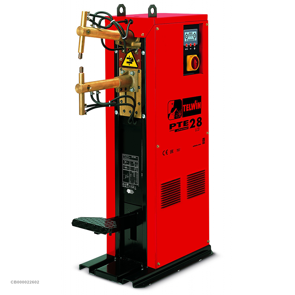 TELWIN PTE 28 LCD – промышленная машина, колонного типа, для точечной сварки работающая от трехфазной сети 380 В. Данный тип агрегатов используется на заводах и крупных производственных цехах, весь машины 141 кг, поэтому предполагается стационарное применение. Для полноценного функционирования устройства используется водяное охлаждение.