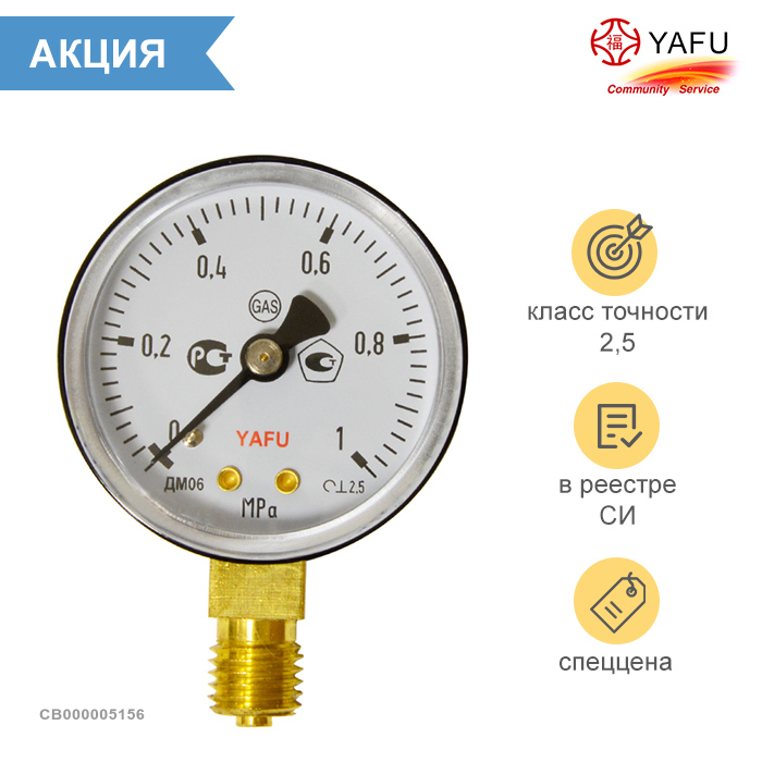 Манометр на редуктор углекислотный, аргоновый 1 МПа (10 кгс/см кв, кл. т. 2,5) в Чебоксарах