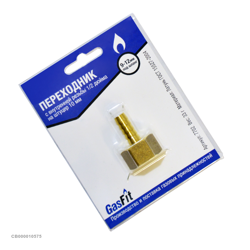 Переходник с внутр. резьбы 1/2 дюйма на штуцер 10 мм (блистер, ф9/12 мм, правая), GasFit в Чебоксарах