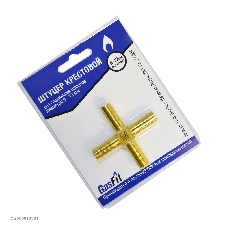 Штуцер крестовой (блистер, ф9/12 мм, елочка 4-х ход.), GasFit в Чебоксарах