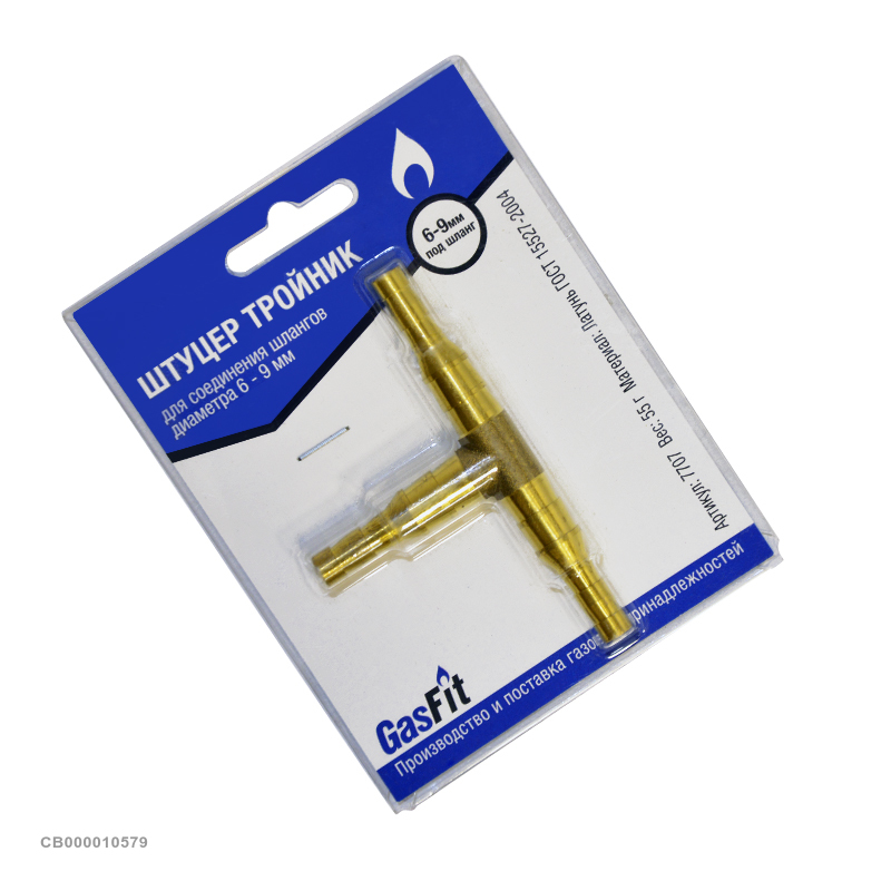 Штуцер тройник (блистер, ф6/9 мм, GasFit) служит для организации разветвления линии газа, образованной газосварочными рукавами.