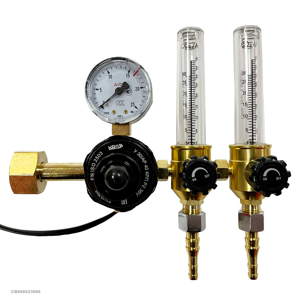При выполнении сварки в среде защитных газов необходимо уменьшить давление газа из баллона и обеспечить его автоматическое поддержание на заданном уровне. С этими задачами отлично справляется универсальный регулятор У-30/АР-40-КРП-Р2, который может работать с аргоном и углекислым газом. Наличие в конструкции стрелочного ротаметра позволяет контролировать объем израсходованного газа в единицу времени, благодаря ротаметру гарантируется высокая точность заданного расхода. Для контроля давления в конструкции предусмотрен манометр. Для защиты клапана от промерзания предусмотрен подогреватель, который работает от напряжения 36 вольт.