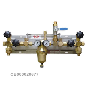 Рампа имеет блок с предохранительным клапаном и фильтром, вентилем продувки и вторым входом для потенциальных удлиняющих узлов. Помимо этого установлен отсекающий вентиль высокого давления, регулятор с вентилем стравливания давления и выходной шаровый вентиль, установленные на панели из нержавеющей стали.