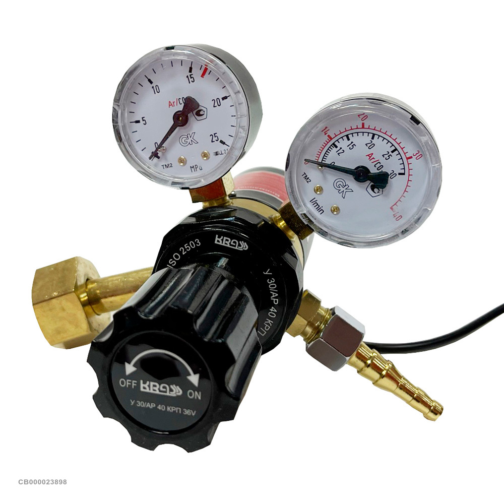 Углекислый газ и аргон для сварки в среде инертных газов находятся в баллонах под высоким давлением, которое необходимо уменьшить. С этими задачами отлично справляется универсальный регулятор У-30/АР-40-КРП. Благодаря этому устройству можно настроить автоматическую подачу газа. Такую функциональность обеспечивает наличие в конструкции манометра, ротаметра и подогревателя газа, работающего от сети 36 вольт. Благодаря наличию подогревателя устройство способно работать в температурном диапазоне от -35 до +50 градусов.