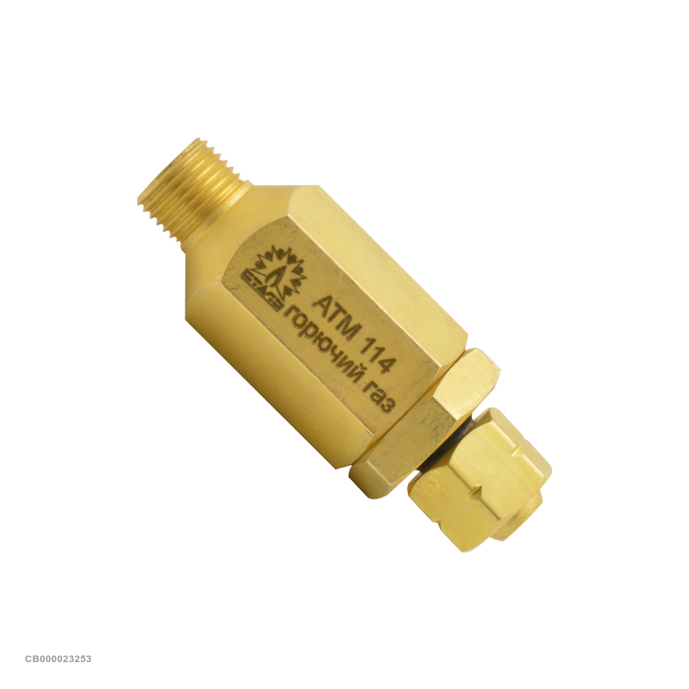 Клапан обратный металлургический НОРД-С АТМ 114, предотвращающий обратный поток газа и пламени при газопламенной обработке металлов. Можно использовать с резаками АТМ15 и АТМ128. Широко применяется в металлургической промышленности.