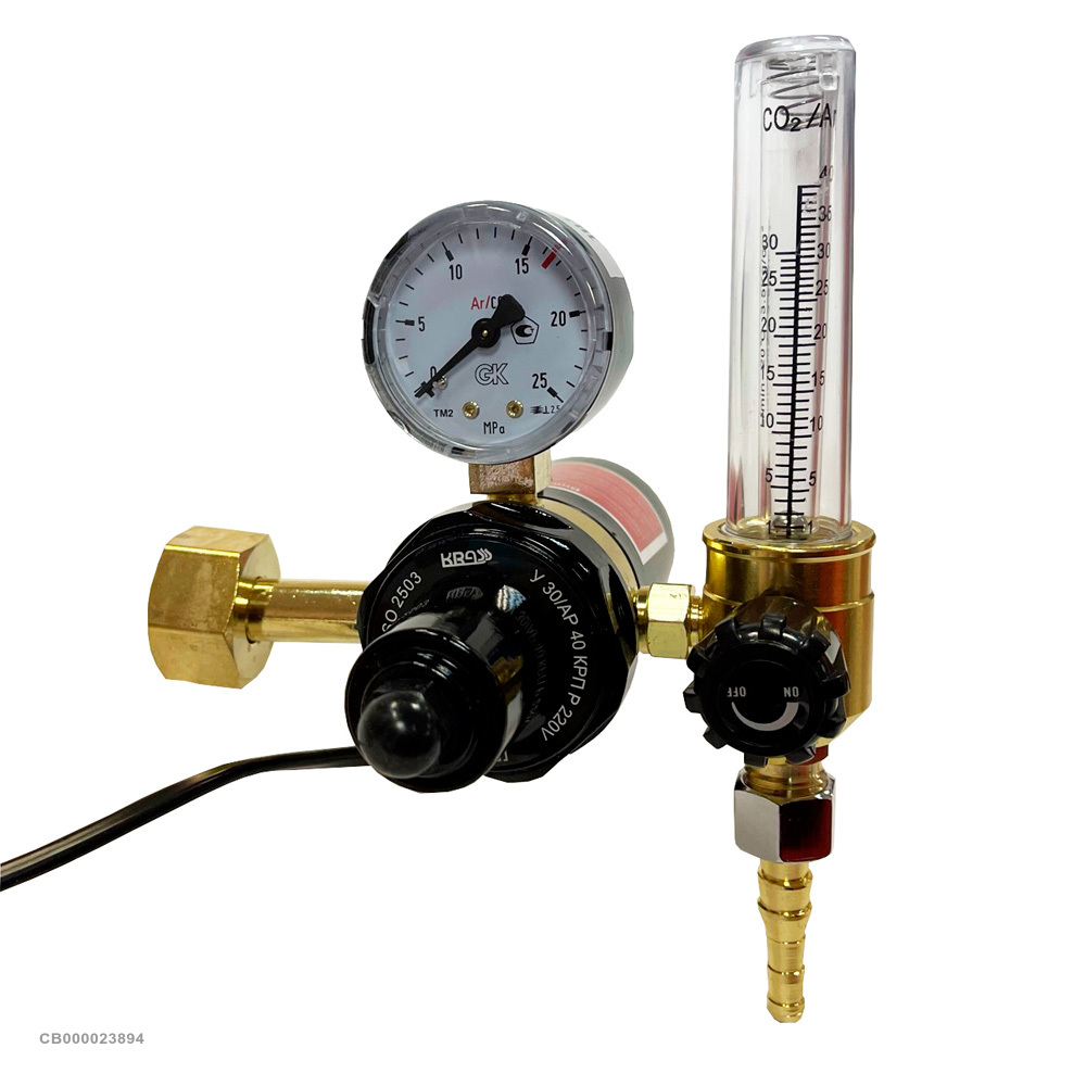 При питании постов и сварочного оборудования необходимо понижение давления газа, поступающего из баллонов, и его поддержание на определенном уровне. Для этих целей отлично подходит универсальный регулятор KRASS У-30/АР-40-КРП-Р. Особенностью этой модели является наличие в конструкции подогревателя газа, благодаря чему исключается замерзание клапана, а значит, и прекращение подачи газа. Для контроля расхода газа используется встроенный манометр.