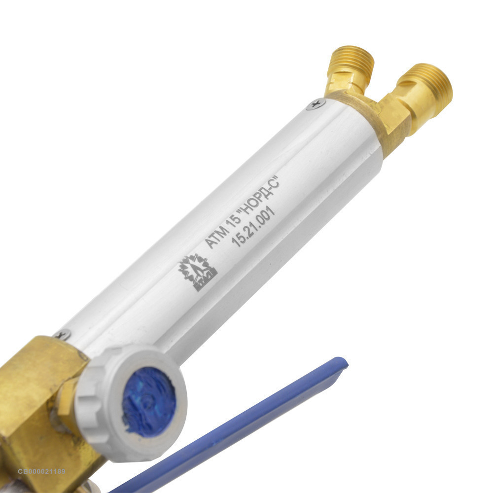 НОРД-С АТМ15 – резак для аварийной металлургической резки сталей максимальной толщиной до 400 мм в особо тяжелых условиях промышленного производства. Резак специализируется на резке слябов, блюмов или заготовок. В качестве рабочей смеси используется пропан-бутан (или природный газ) с чистым кислородом не ниже 99,5% по ГОСТ 5593-78.