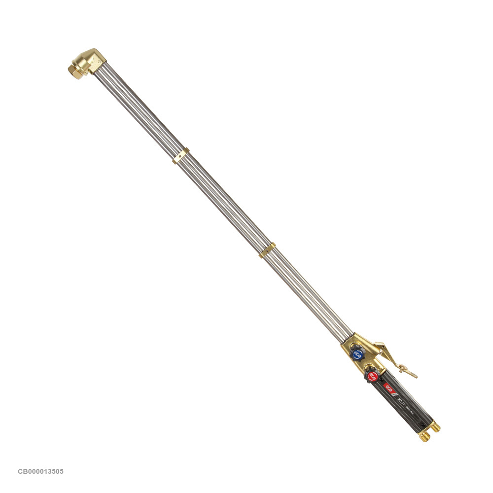Удлиненный трехтрубный резак GCE X511 с внутрисопловым смешением газов предназначен для ручной разделительной резки металла, толщиной до 500 мм с использованием пламени, образуемого сжиганием горючего газа с кислородом.