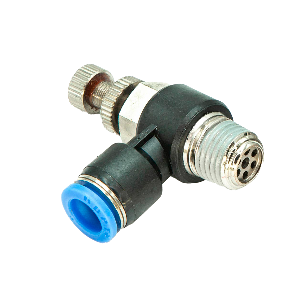 Регулятор расхода воздуха L-образный с наружной резьбой NSC 8-02 (R1/4")