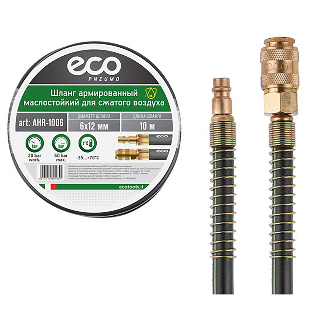 Шланг армированный маслостойкий ф 6/12 мм с быстросъемн. соед. ECO (длина 10 м) (AHR-1006) в Чебоксарах