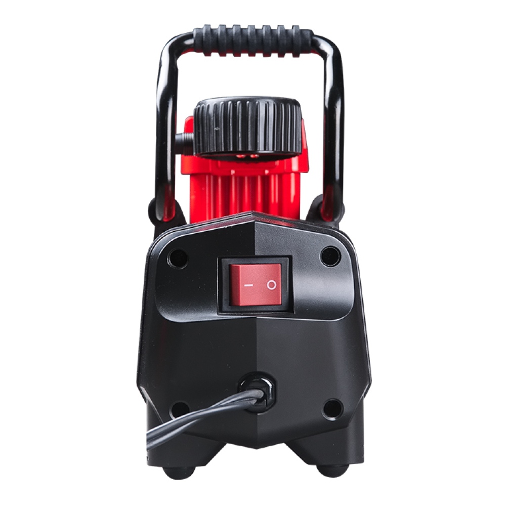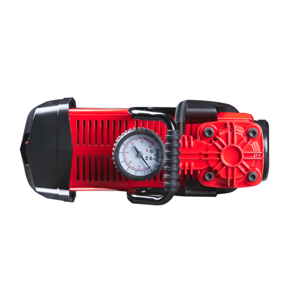 Мощный автомобильный компрессор с клеммным подключением к аккумулятору автомобиля. Оснащен встроенным дефлятором для понижения давления в шинах.