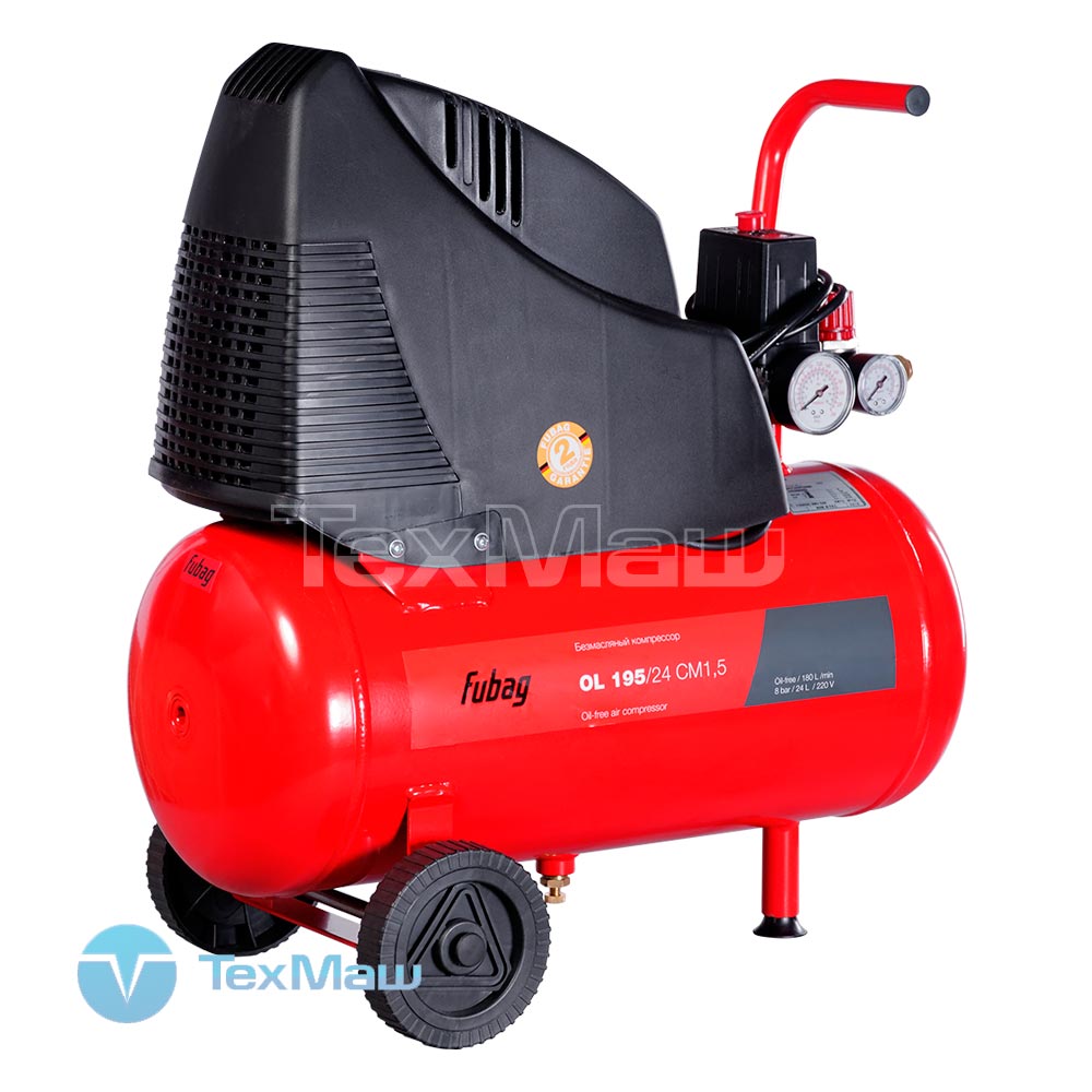 Компрессоры FUBAG OL 195/24 CM1,5 — компактные поршневые установки для применения в тех областях, где имеется небольшая потребность в сжатом воздухе. Это некрупные производства, обслуживание автотранспорта, коммунальная сфера и прочие. Данные безмасляные коаксиальные агрегаты способны обеспечивать 180 литров сжатого воздуха в минуту при работе на предельно допустимом давлении 8 атм. Мощность такого устройства составляет 1,5 кВт. Оборудование оснащено системой автоматической защиты от перегрева.