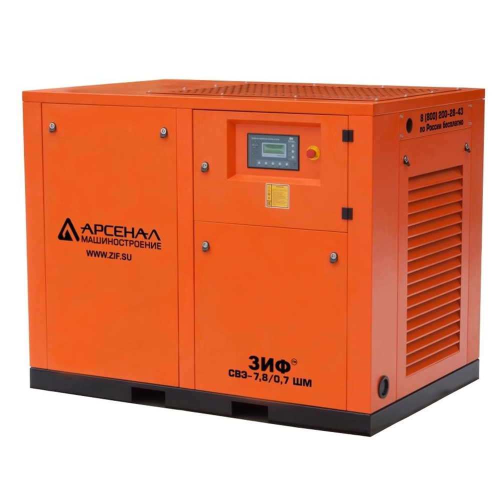 Винтовые электрические компрессорные установки ЗИФ-СВЭ серии ШМ (оснащены шумозащитным кожухом и микропроцессорным управлением) и ШМЧ (дополнительно установлен частотный преобразователь частоты вращения двигателя) служат для снабжения сжатым воздухом предприятий любого типа и размера.