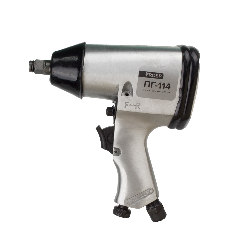 Пневмогайковерт модели FROSP ПГ-114 имеет неплохой момент затяжки для своих габаритов и массы, но все-таки для автомобильных колес его будет не хватать. Работает при давлении в 6,3 бар.