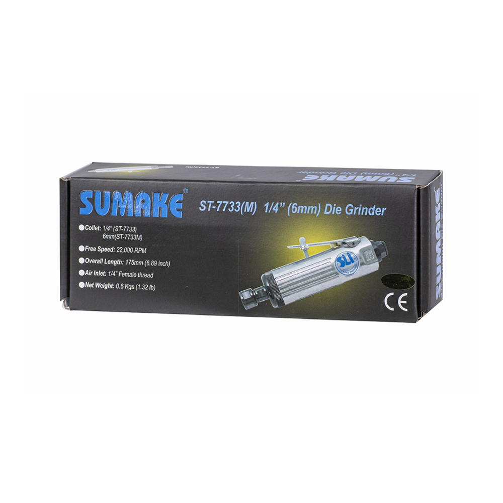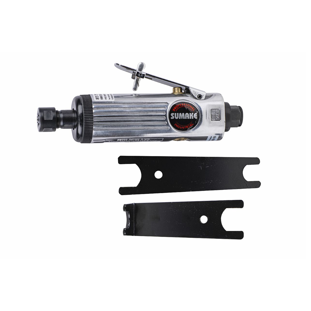 Пневматическая бормашинка Sumake ST-P7733M - предназначена для тонкой механической обработки, металла, керамики, камня, кости, фарфора, и других материалов, борами, фрезами, сверлами, шлифовальными и полировальными кругами, дисковыми пилами и другими насадками. Пневматическая бормашинка по сравнению с электрическим аналогом отличается компактным размером и меньшим весом. Это незаменимый помощник при проведении слесарно-монтажных работ. Широко применяется в строительстве, деревообработке, ремонтных работах.