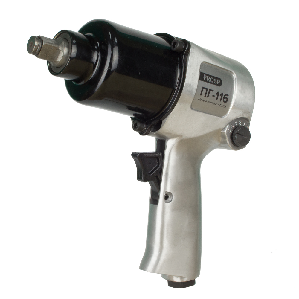 Модель FROSP ПГ-116 имеет квадрат шпинделя 1/2 дюйма. Есть функция реверса, а также регулировки момента затяжки. Этот пневмогайковерт можно назвать самым популярным в своем сегменте. Он сочетает в себе хорошую работу, длительный срок эксплуатации, доступную цену.