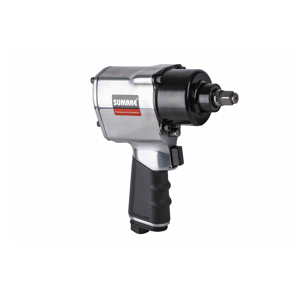 Пневматический гайковерт Sumake ST-55444 - это устройство профессионального класса, работающее на сжатом воздухе. Применяется инструмент для работы с крепежными соединениями. Металлический корпус придает прочность конструкции, а мягкая накладка на рукоятке способствует надежному удержанию инструмента при работе.