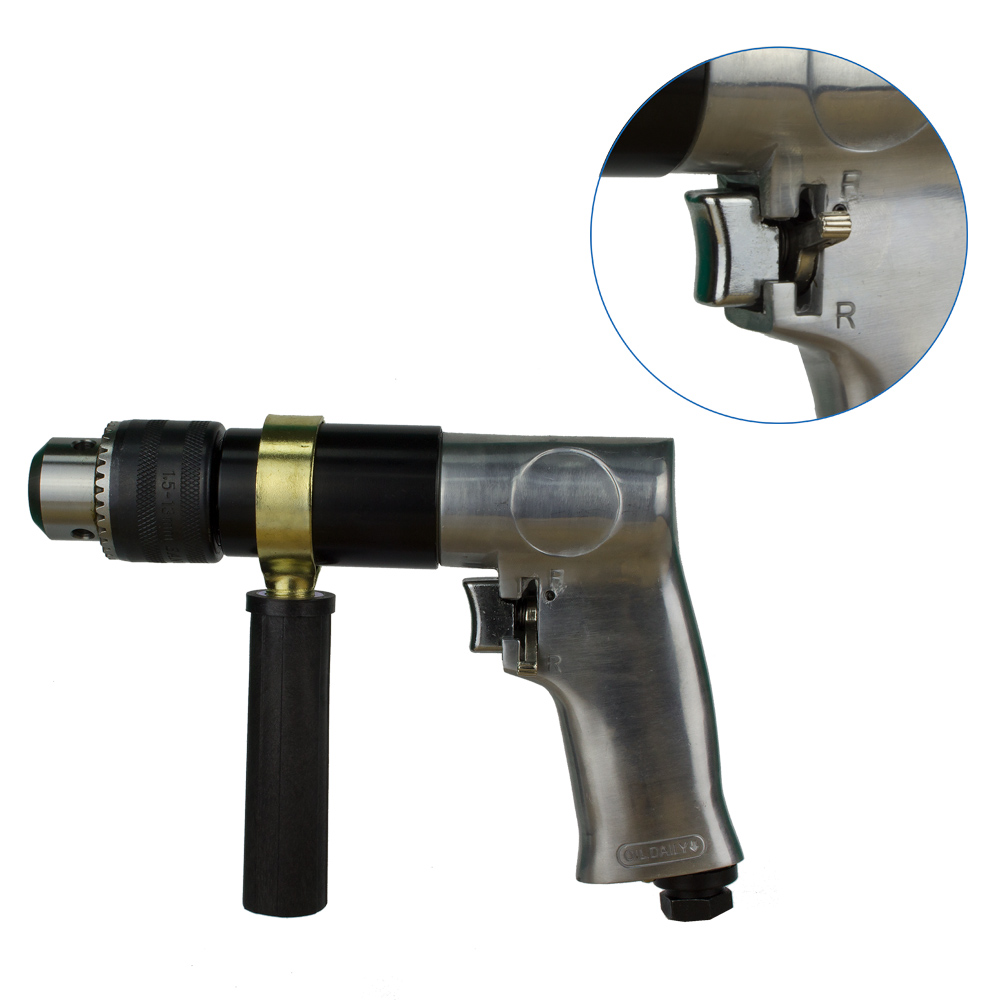 Пневмодрель XMD-121 допускает использование широкого ассортимента сверл с диаметром до 13 миллиметров, что значительно расширяет возможный спектр проводимых работ. Работает инструмент при давлении 0,63 МПа.