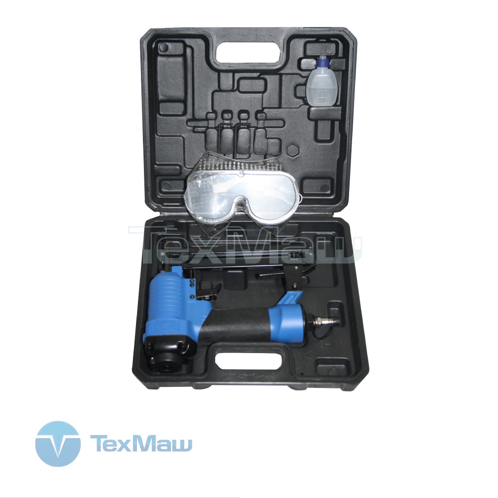 Инструмент упакован в пластиковый кейс. В комплекте идут защитные очки, шестигранные ключи для обслуживания инструмента и масленка с пневматическим маслом для закапывания в штуцер.