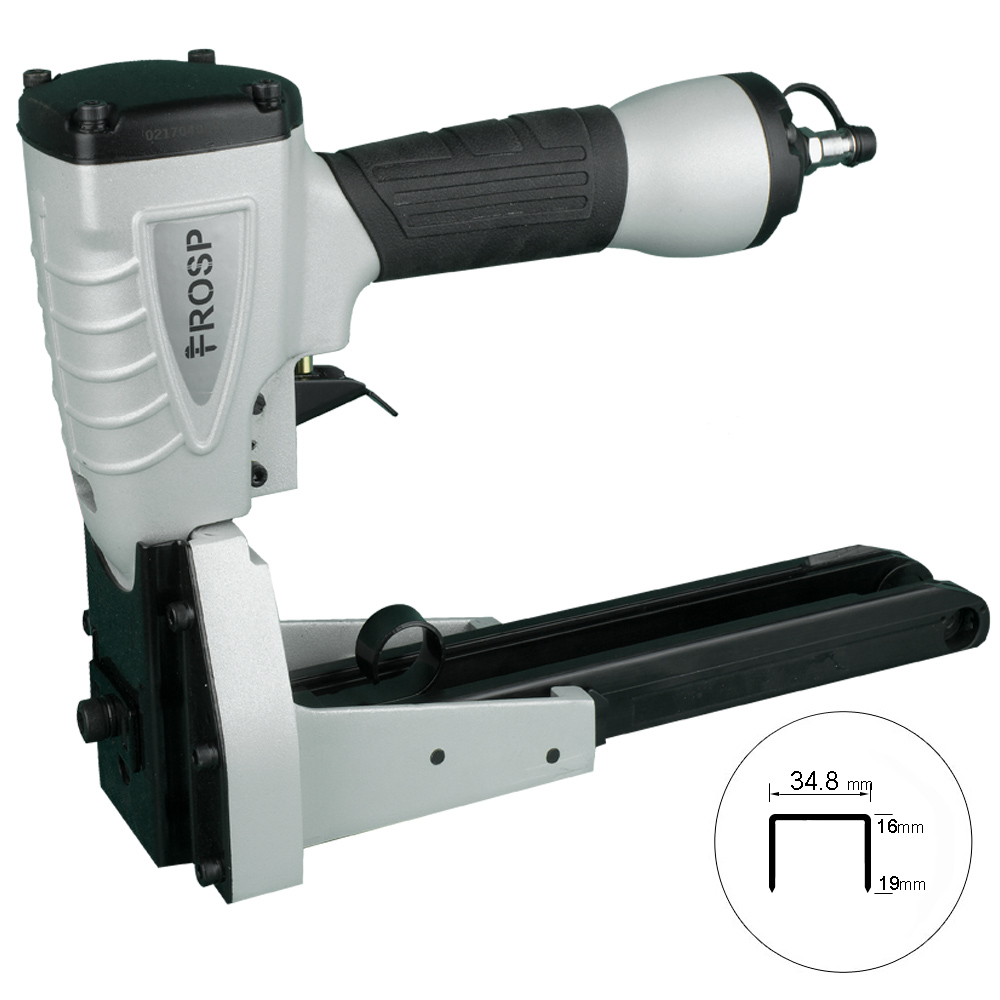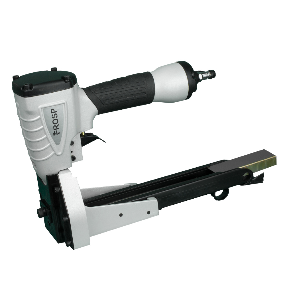 FROSP R9905 – степлер для коробок, работающий на сжатом воздухе. Его используют вместе с компрессором. Пневматический инструмент позволяет выполнить в 2-3 раза больше работы по сравнению с механическим степлером.